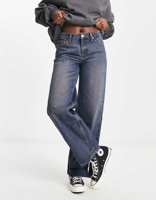 Weekday Ample low rise baggy jeans in red cast blue wash