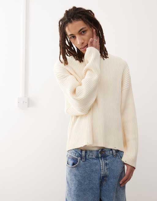 Weekday Arthur chunky rib sweater with distressed hem detail in off-white