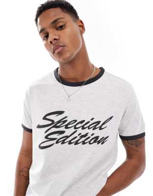 Weekday Buck ringer T-shirt with graphic print in gray melange