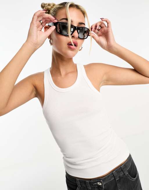 Weekday Close fitted rib t-shirt in white