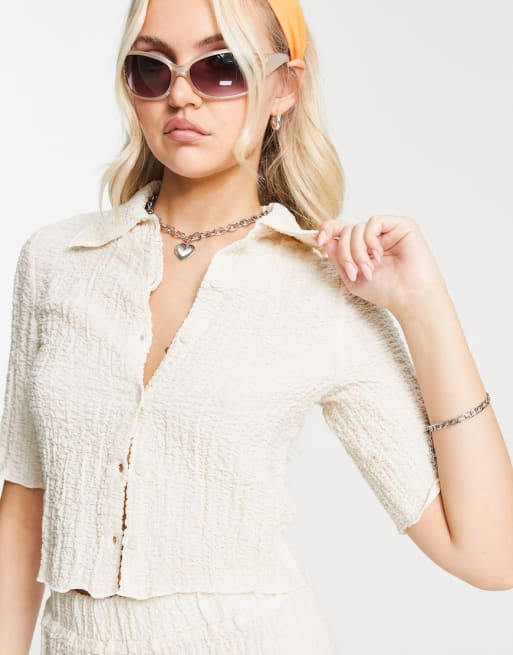 Weekday Elin crinkle short sleeve and skirt in off white - part of a set