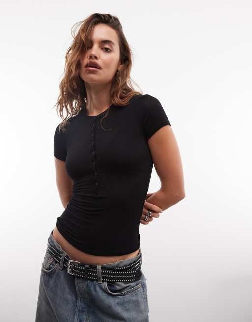Weekday henley short sleeve T-shirt in black