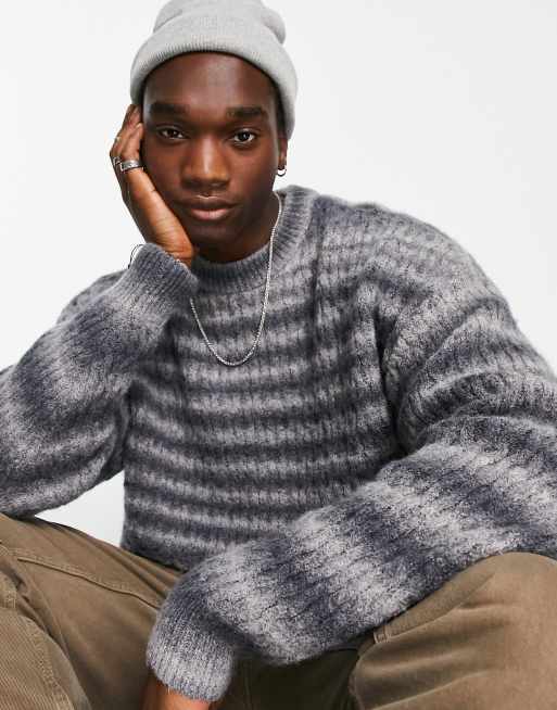 Weekday john oversized striped sweater in gray