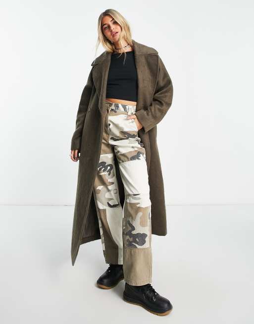Weekday Kia oversized wool coat with tie waist detail in brown