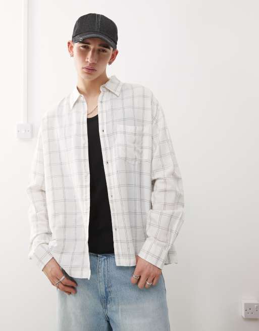 Weekday linen look oversized long sleeve shirt in off-white plaid