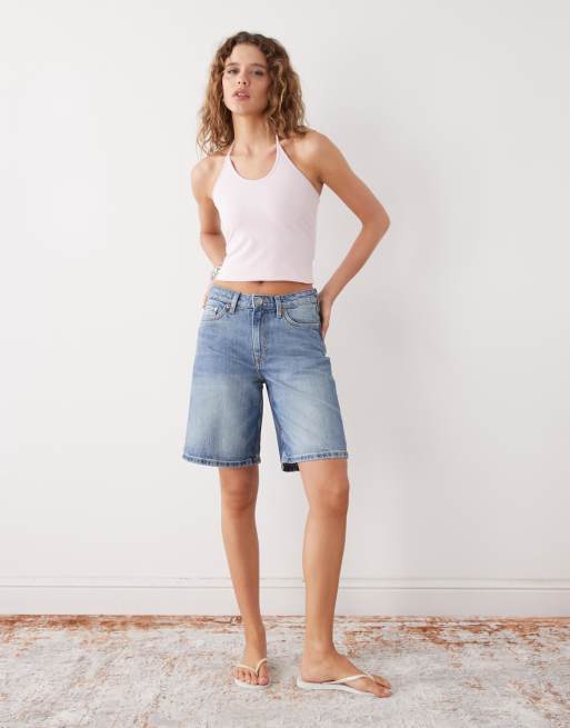 Weekday Monterey denim shorts in mid blue wash