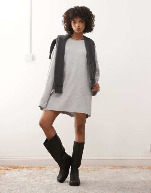Weekday oversized long sleeve T-shirt dress in gray melange