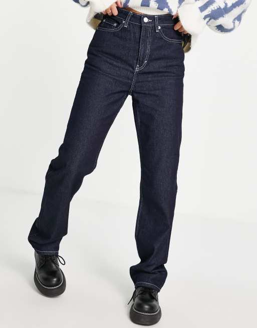 Weekday Rowe cotton straight leg jeans in Rinse blue love dark wash - LBLUE
