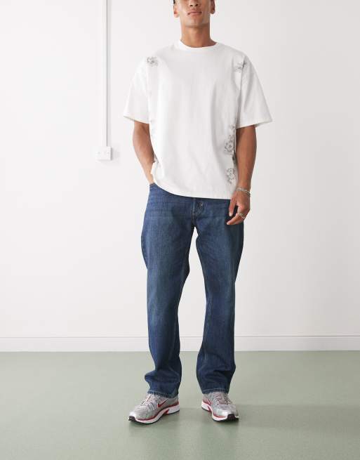 Weekday Space relaxed fit straight leg jeans in dark blue