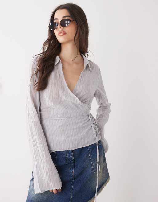 Weekday structured wrap shirt in gray stripe