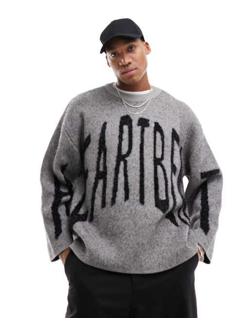 Weekday Teo oversized sweater with Heartbeat graphic in shiny yarn in gray