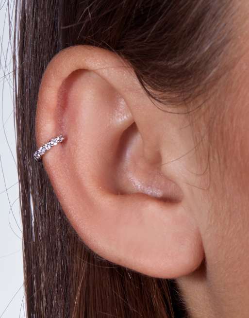 With Bling rhodium plated 6mm huggie hoop piercing with crystal