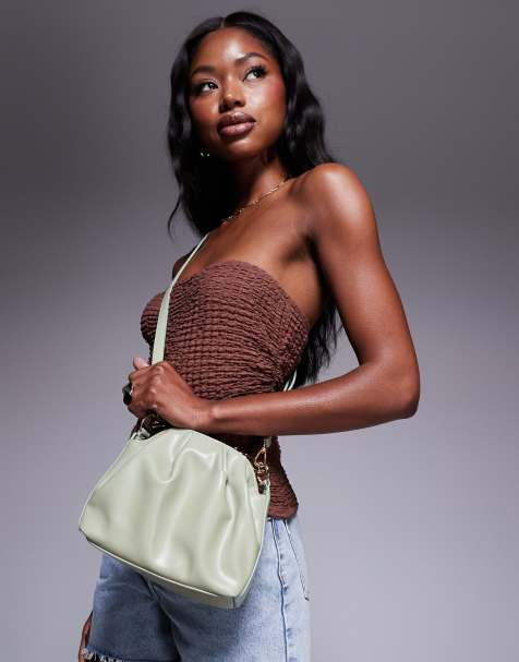 ASOS DESIGN peachskin modal cinched side longline top in khaki green