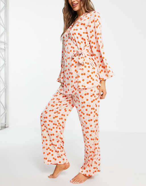 Y.A.S exclusive kimono shirt and pants pajama set in cherry print