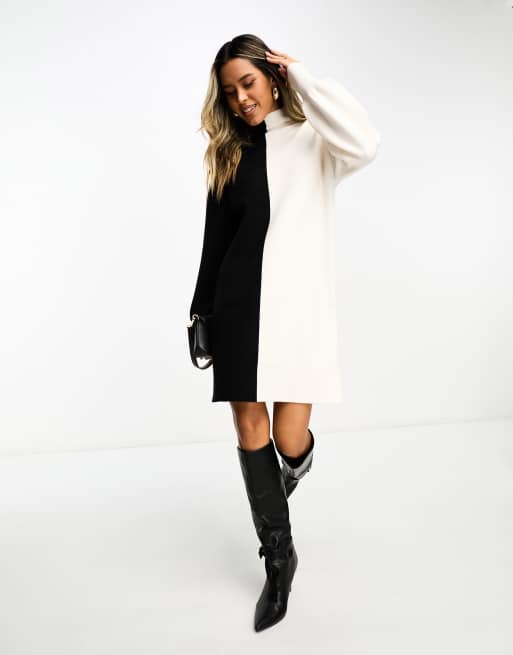Y.A.S high neck knit midi dress in half and half mono