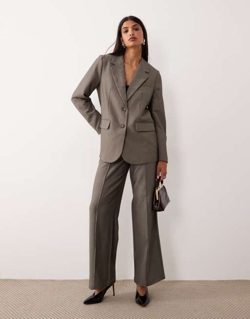 YAS oversized blazer and wide leg pants suit set in gray melange