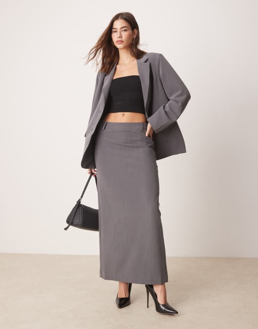 YAS oversized dad fit blazer and tailored maxi skirt set in thunderstorm gray