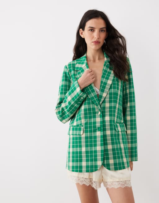 YAS tailored blazer in bright green plaid