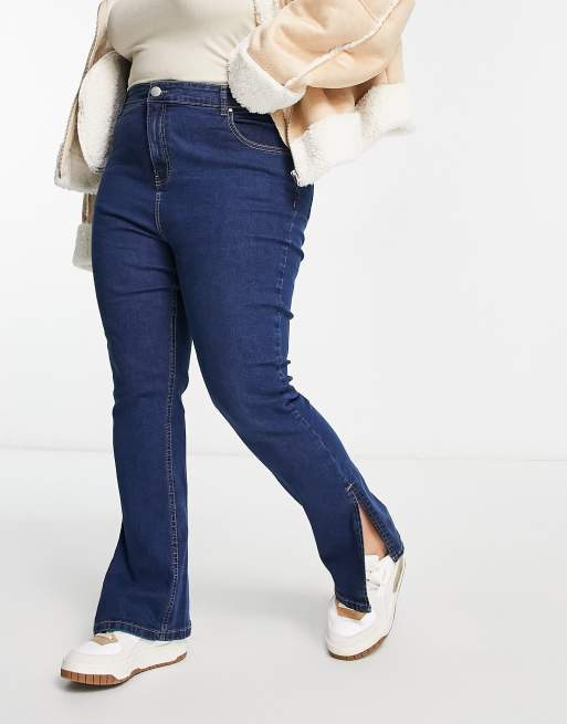Yours split hem straight leg jean in mid blue