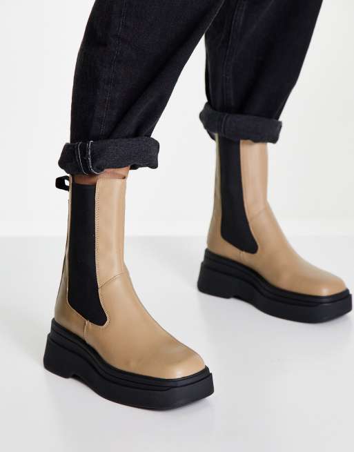 Vagabond Carla elastic side leather flatform chelsea boots in lark