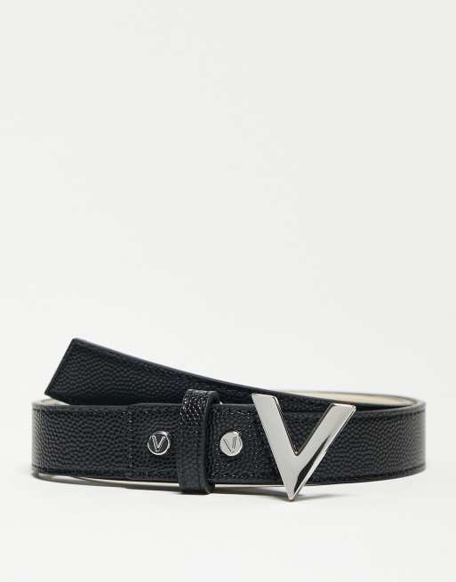 Valentino Divina belt in black with silver V buckle