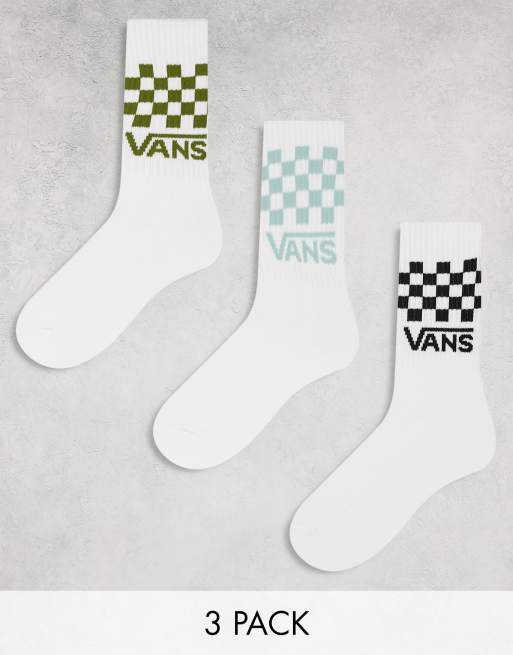 Vans 3 pack classic crew socks in white with grey, black and blue