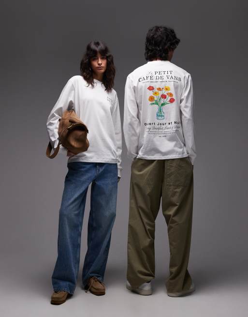Vans cafe vans graphic back print long sleeve t-shirt in white
