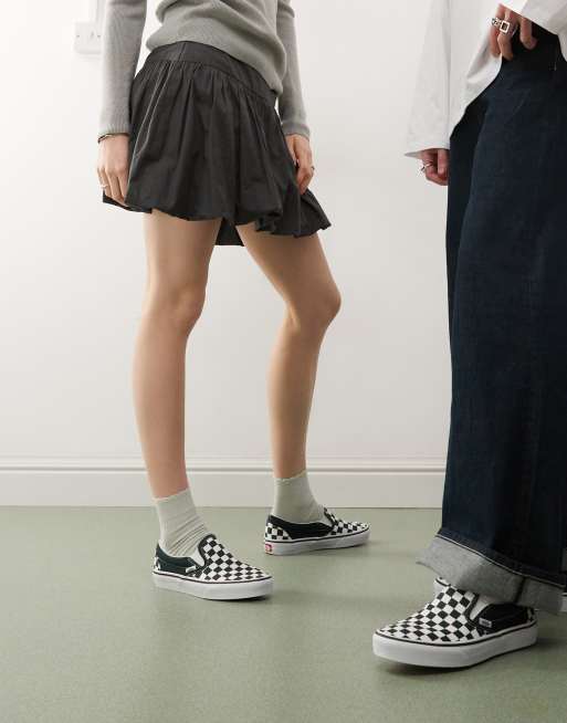 Vans Classic Slip-On colour theory checkerboard trainers in dark green