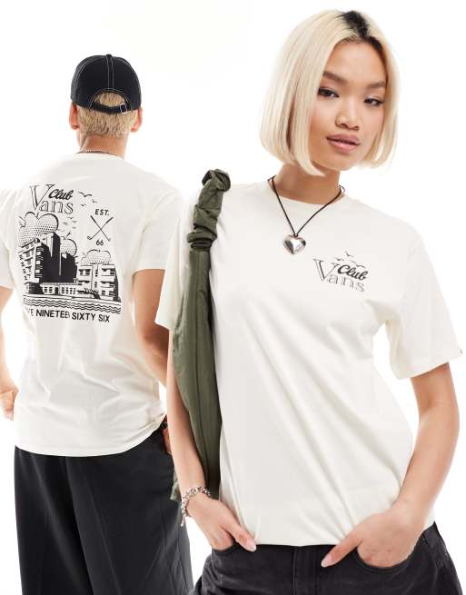Vans club vee pack print t-shirt in off white