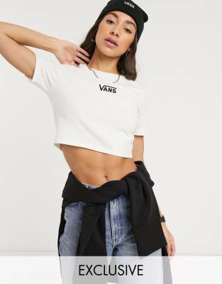 Vans Drop V cropped t-shirt in cream Exclusive at ASOS