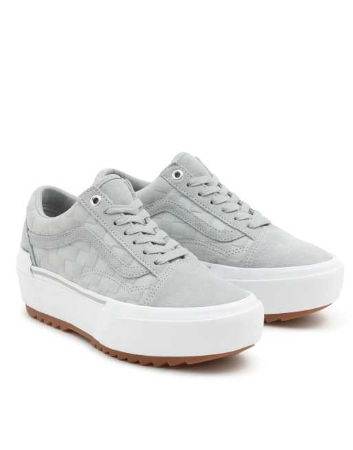 Vans Old Skool Stacked Emboss Check trainers in high rise grey