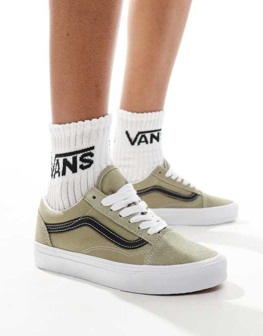 Vans old skool trainers with oversized laces in light beige