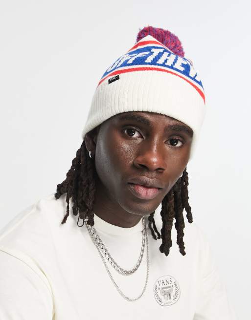 Vans OTW pom beanie in white and blue