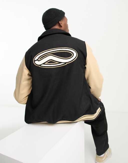 Vans thomas varsity jacket in black and beige