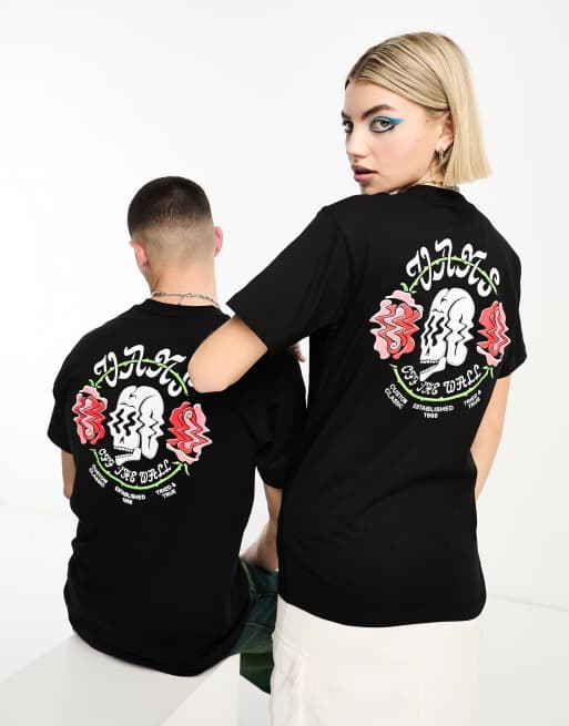 Vans unisex shakn skull back print t-shirt in black