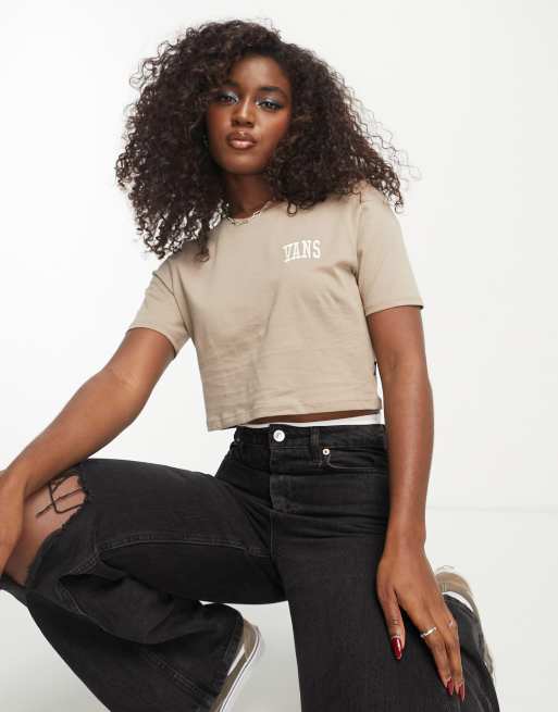 Vans Varsity sporty crop t-shirt in DESERT Exclusive at ASOS