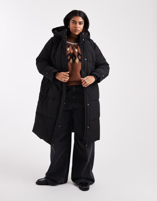 Vero Moda Curve 2 in 1 longline puffer coat with removeable sleeves in black