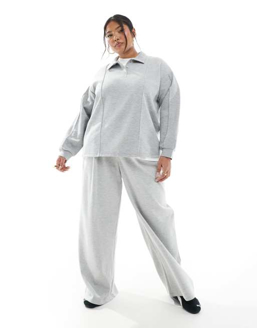 Vero Moda Curve jersey polo and wide leg jogger co-ord in grey