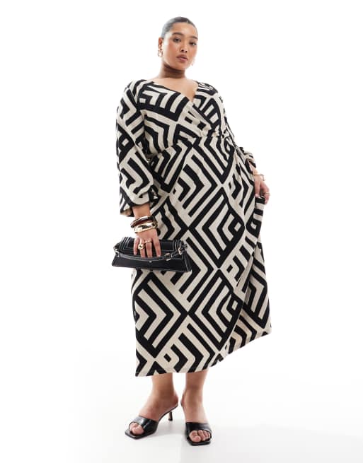 Vero Moda Curve wrap ankle dress in abstract mono print