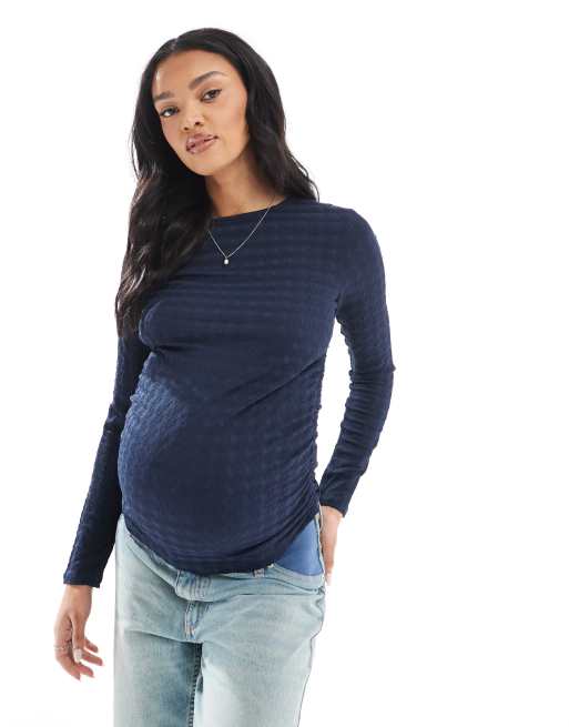 Vero Moda Maternity textured ruched long sleeve top in navy