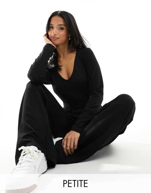 Vero Moda Petite knitted wide leg jumpsuit in black