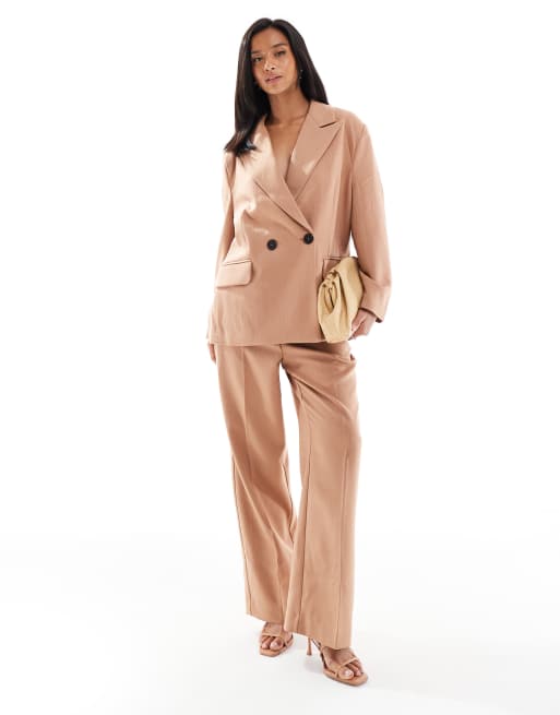 Vero Moda Petite tailored herringbone blazer and wide leg trouser in mocha