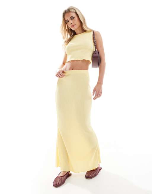 Vero Moda petite textured sleeveless top and maxi skirt set in pale banana