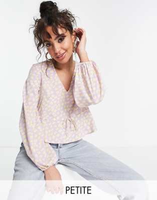 Vero Moda Petite tie waist blouse in lilac and yellow abstract print