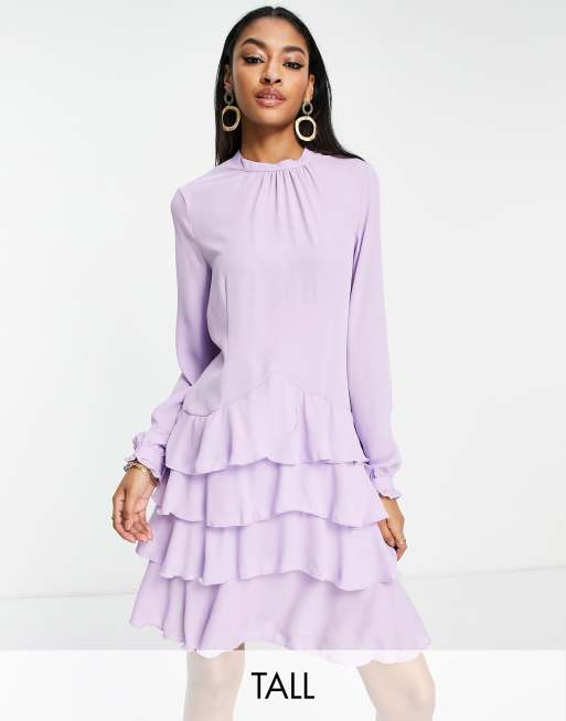 Vero Moda Tall chiffon ruffle mini dress in lilac