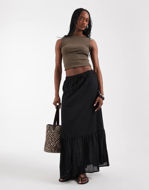 Vero Moda Tall dobby texture boho maxi skirt in black