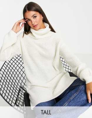 Vero Moda Tall wool mix longline jumper with roll neck in cream