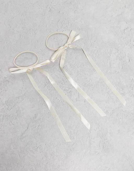 Vero Moda 2 pack bow ribbon hairbands in cream