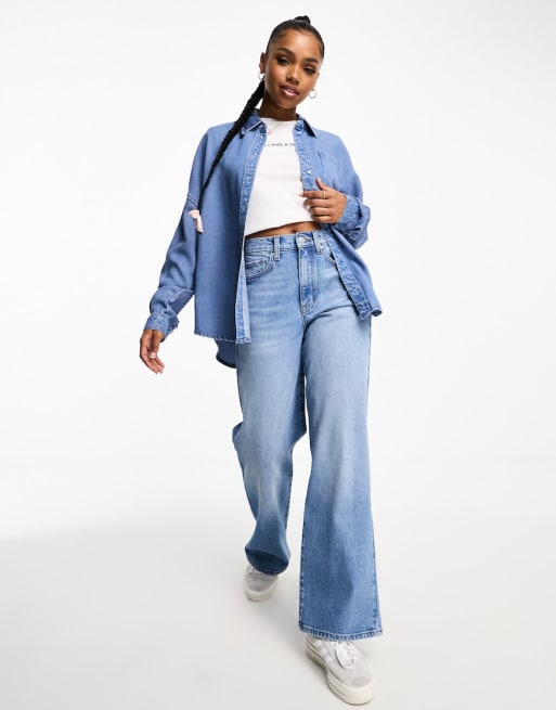 Vero Moda Aware chuck on denim shirt and wide leg denim trouser co-ord in medium
