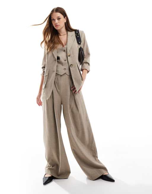 Vero Moda Aware textured pleated wide leg trouser co-ord in taupe grey melange